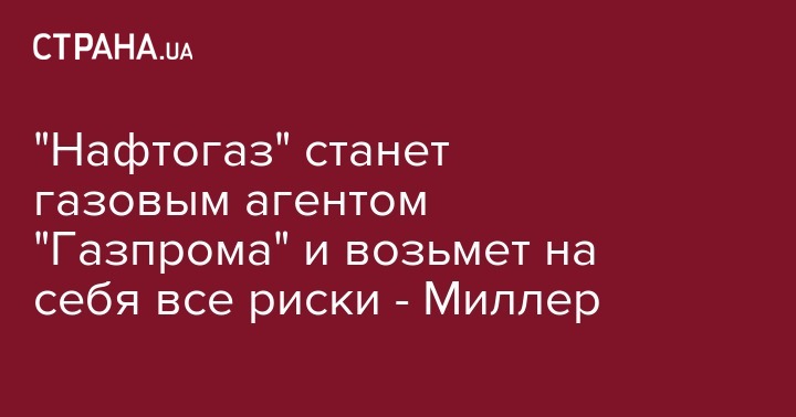 "Нафтогаз" станет газовым агентом "Газпрома" и возьмет на себя все риски - Миллер