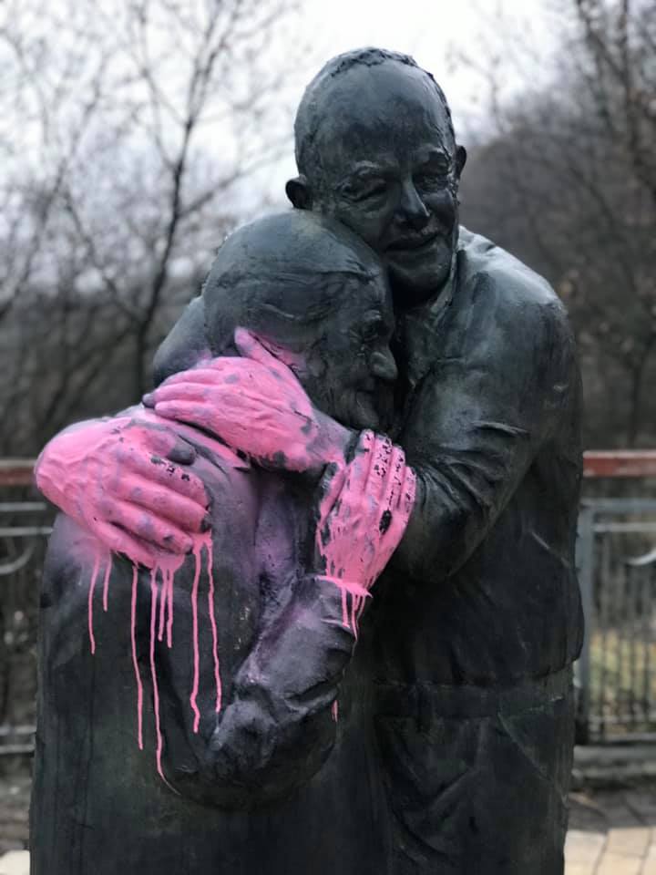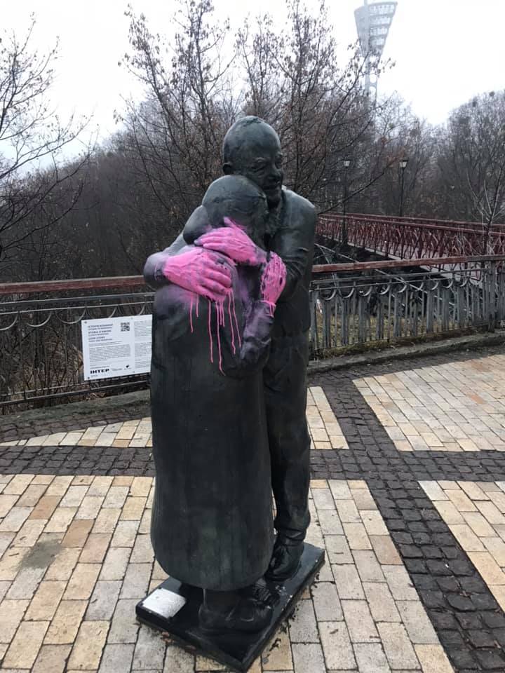 В Киеве неизвестные облили краской скульптуру "История любви", которая расположена в Крещатом парке возле Моста влюбленных. Об этом сообщил президент Торгово-промышленной палаты Украины Геннадий Чижиков.