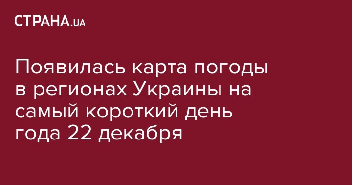 Появилась карта погоды в регионах Украины на самый короткий день года 22 декабря