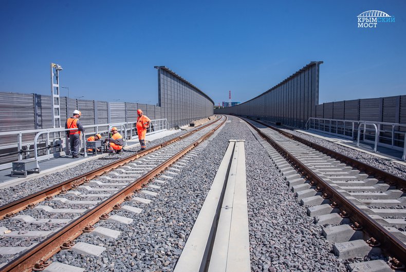 Достройка продолжалась и в текущем году. Весной, к началу апреля собрали железнодорожные пролеты. А нынешним летом уложили все рельсы.