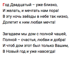 Поздравляю с Новым годом! Желаю, что он принес нам самое долгожданное и желанное. Желаю крепкого здоровья, веры в чудеса и свои силы! Люблю, скучаю и крепко целую!