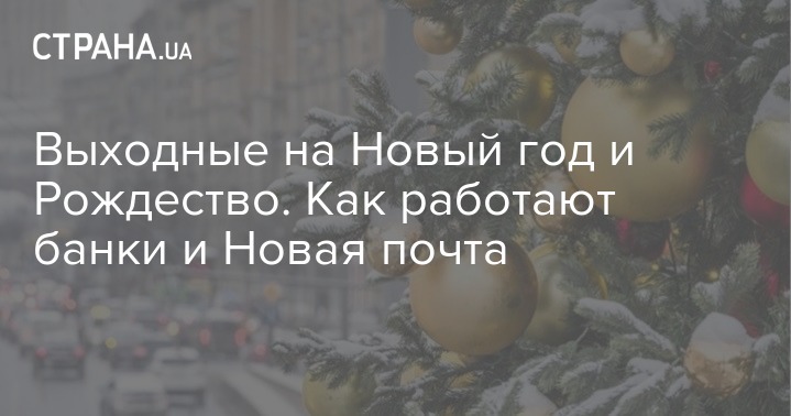 Украина вступает в череду зимних праздников. Отделения банков и почта меняют график работы на Новый год и Рождество. Собрали информацию о том, как будут работать популярные среди украинцев учреждения в ближайшие дни.