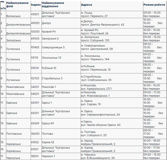 График Укрпочты