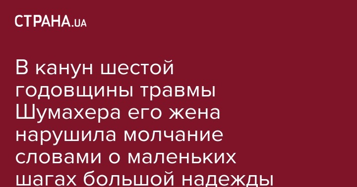 Супруга легендарного автогонщика Михаэля Шумахера Коррина прервала молчание и обратилась к его почитателям в канун 6-летия со дня падения супруга во французских Альпах, когда спортсмен получил тяжелую травму и с тех пор не появлялся на публике.