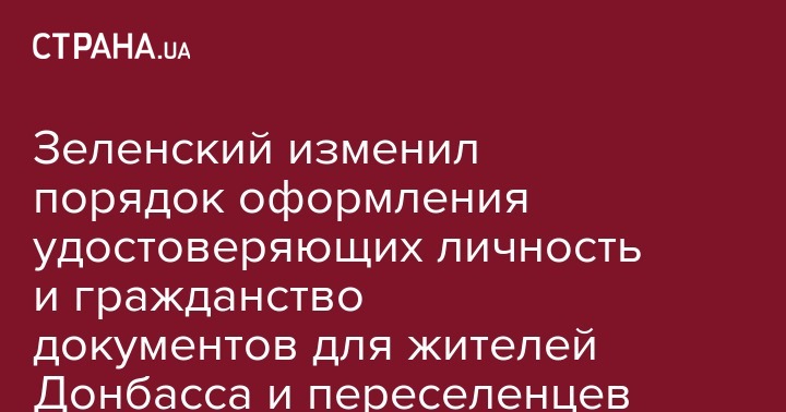 Зеленский изменил порядок оформления удостоверяющих личность и гражданство документов для жителей Донбасса и переселенцев