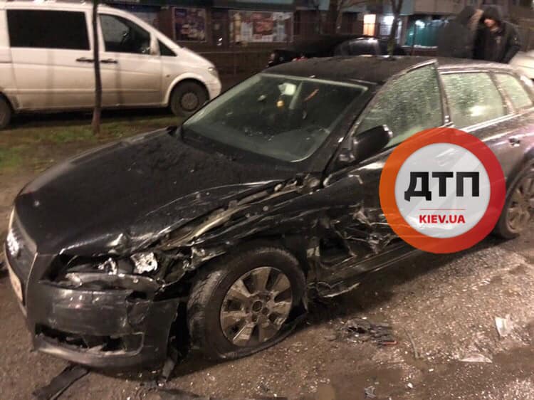 Пьяный дрифт на Троещине закончился столкновением с припаркованными авто. Фото