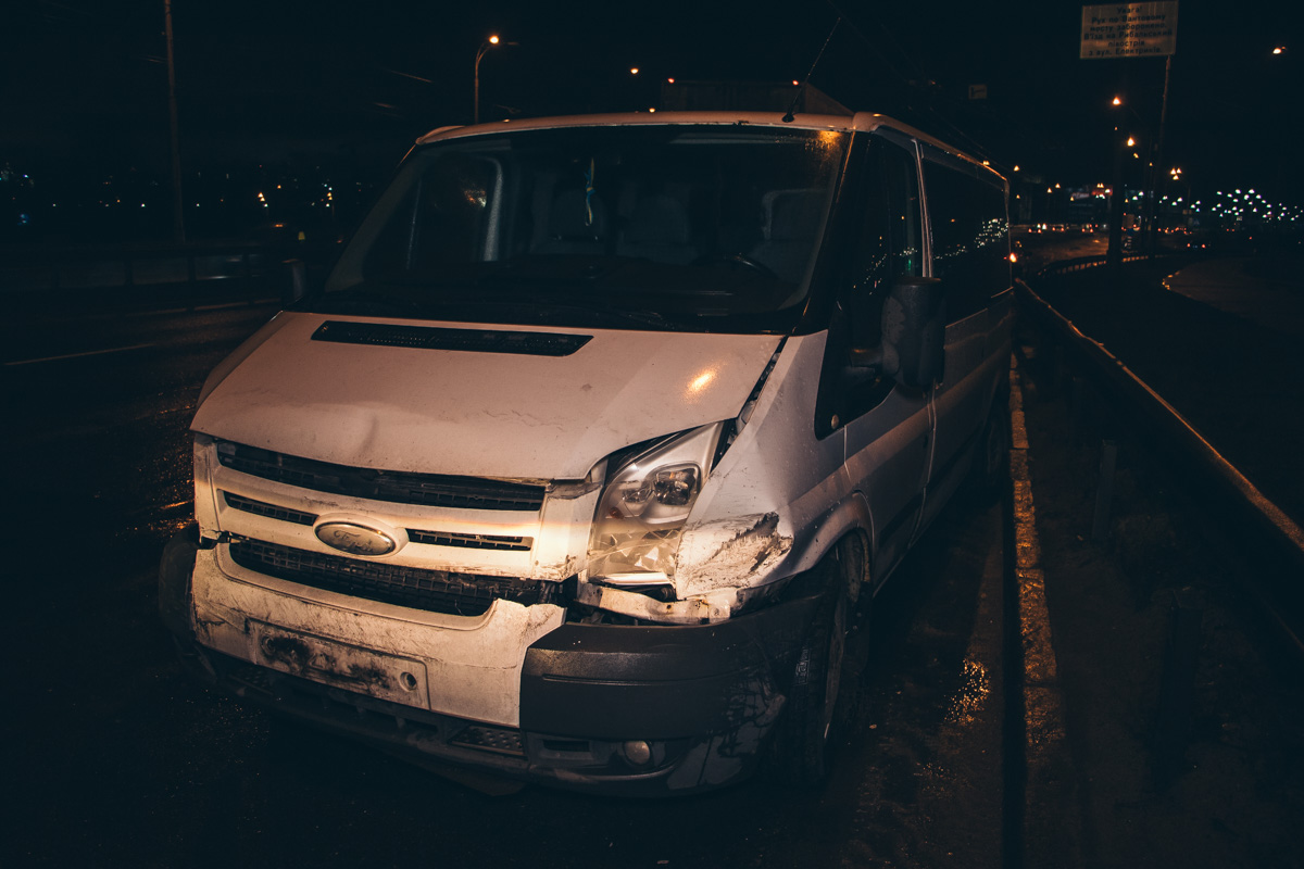 В ночь на 27 декабря в Киеве на Северном мосту Ford Transit двигался в сторону проспекта Степана Бандеры, но в машину врезалась пластина деформационного шва моста и Ford развернуло и выбросило в отбойник. Об этом сообщает Информатор.
