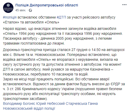 Сейчас на месте происшествия работают полицейские. Все обстоятельства аварии устанавливаются. Сведения по данному факту будут внесены в ЕДРР по ч. 3 ст. 286 Уголовного кодекса Украины (нарушение правил безопасности дорожного движения или эксплуатации транспорта лицами, управляющими транспортными средствами).