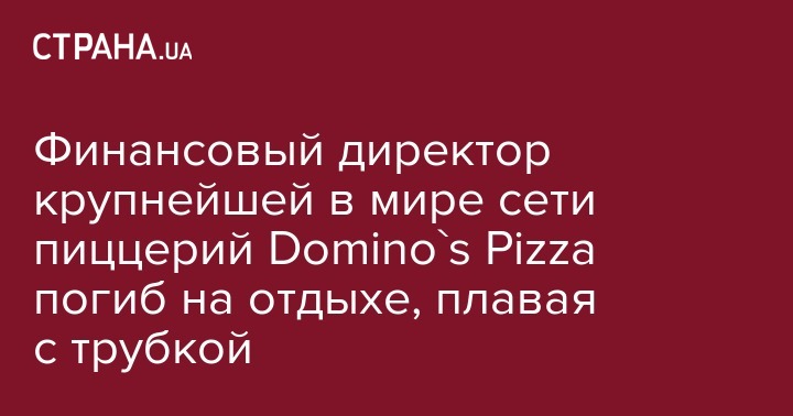 Финансовый директор крупнейшей в мире сети пиццерий Domino's Pizza погиб на отдыхе, плавая с трубкой