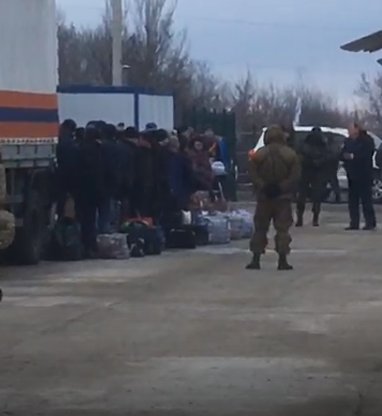 13:53  Начинается передача удерживаемых в Донецке украинцев Киеву. Их уже вывели из автобуса и построили.