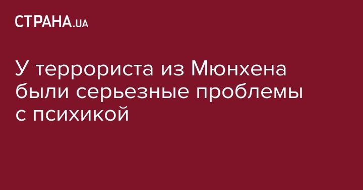18-летний террорист иранского происхождения, который расстрелял посетителей торгового центра в Мюнхене, страдал серьезным психическим заболеванием.