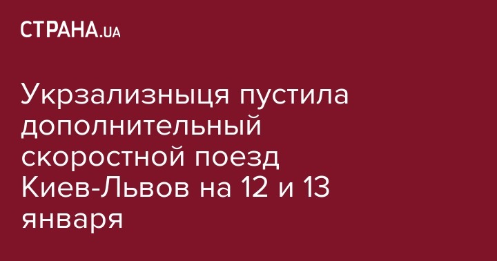 Укрзализныця назначила дополнительный скоростной поезд "Интерсити+", который идет под номером 755/756 по маршруту Киев - Львов - Киев на 11-13 января 2020 года. Об этом сообщается на сайте ж/д компании