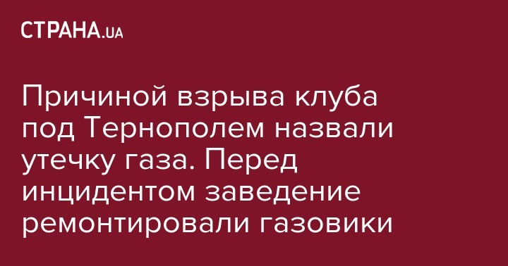 Полиция Тернопольской области утверждает, что возможной причиной взрыва в сельском клубе Угринова могла стать врезка в газовую трубу. Об этом сообщает пресс-служба полиции.