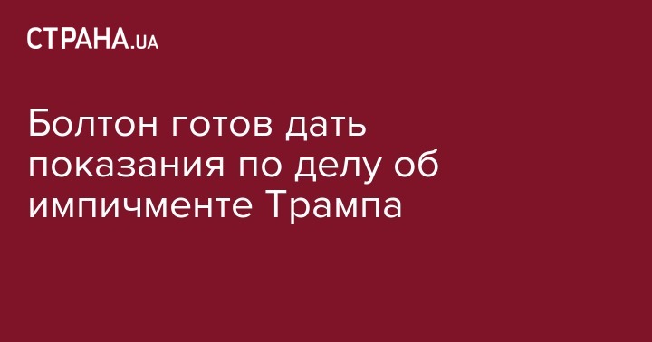 Бывший советник Дональда Трампа по нацбезопасности Джон Болтон заявил, что готов дать показания в Сенате по делу об импичменте президента, если получит соответствующую повестку.