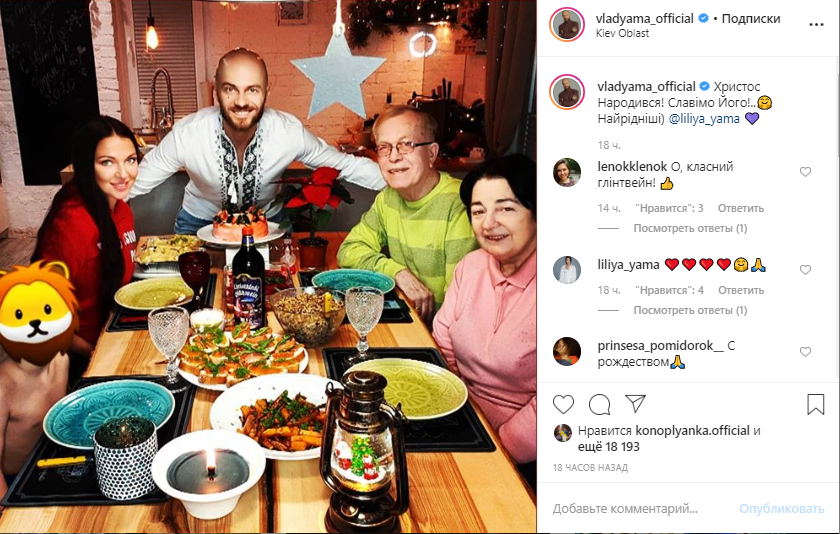Телеведущий и известный танцор Влад Яма отметил Рождество с самыми близкими и родными - ребенком, супругой Юлией и родителями.