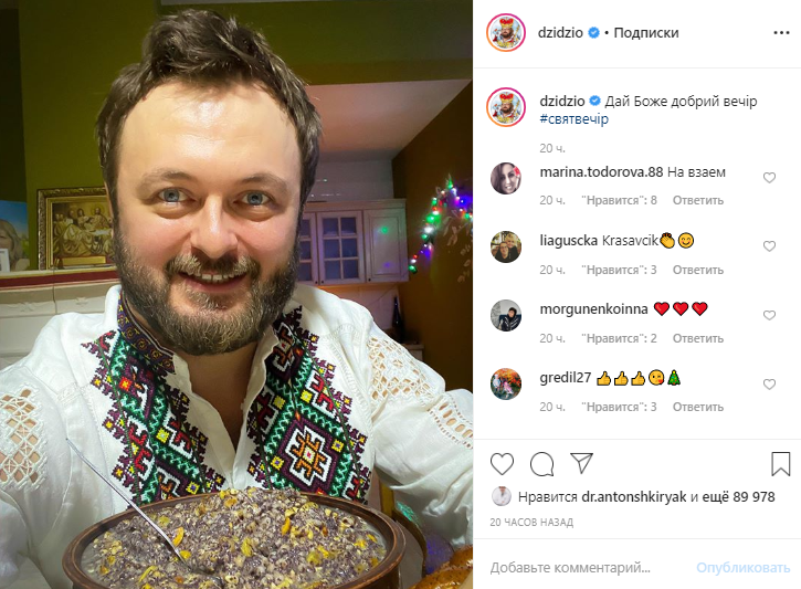 Известный музыкант Дзидзьо пожелал доброго вечера, опубликовав селфи с кутьей.