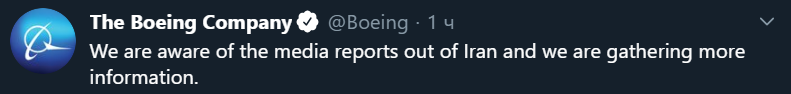 7:49  В Твиттере компании "Боинг" написали, что знают о катастрофе под Тегераном и собирают информацию о ней.