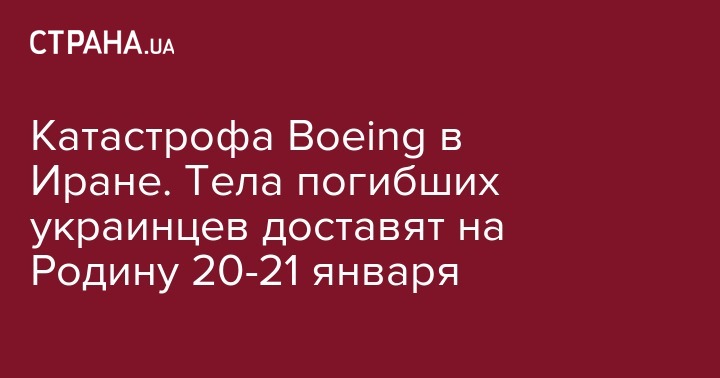 Ориентировочно 20-21 января тела украинцев, погибших в Иране при катастрофе пассажирского самолета МАУ Boeing 737-800, будут доставлены на родину. Об этом стало известно из заявления секретаря Совета национальной безопасности и обороны Украины Алексея Данилова изданию "ВВС.Украина".