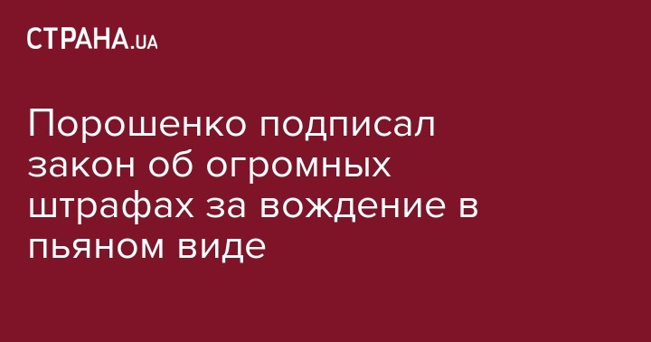 Президент Украины подписал закон № 4373, который предусматривает увеличение штрафов за вождение транспортного средства в состоянии алкогольного, наркотического или другого опьянения. Об этом Петр Порошенко сообщил в Facebook