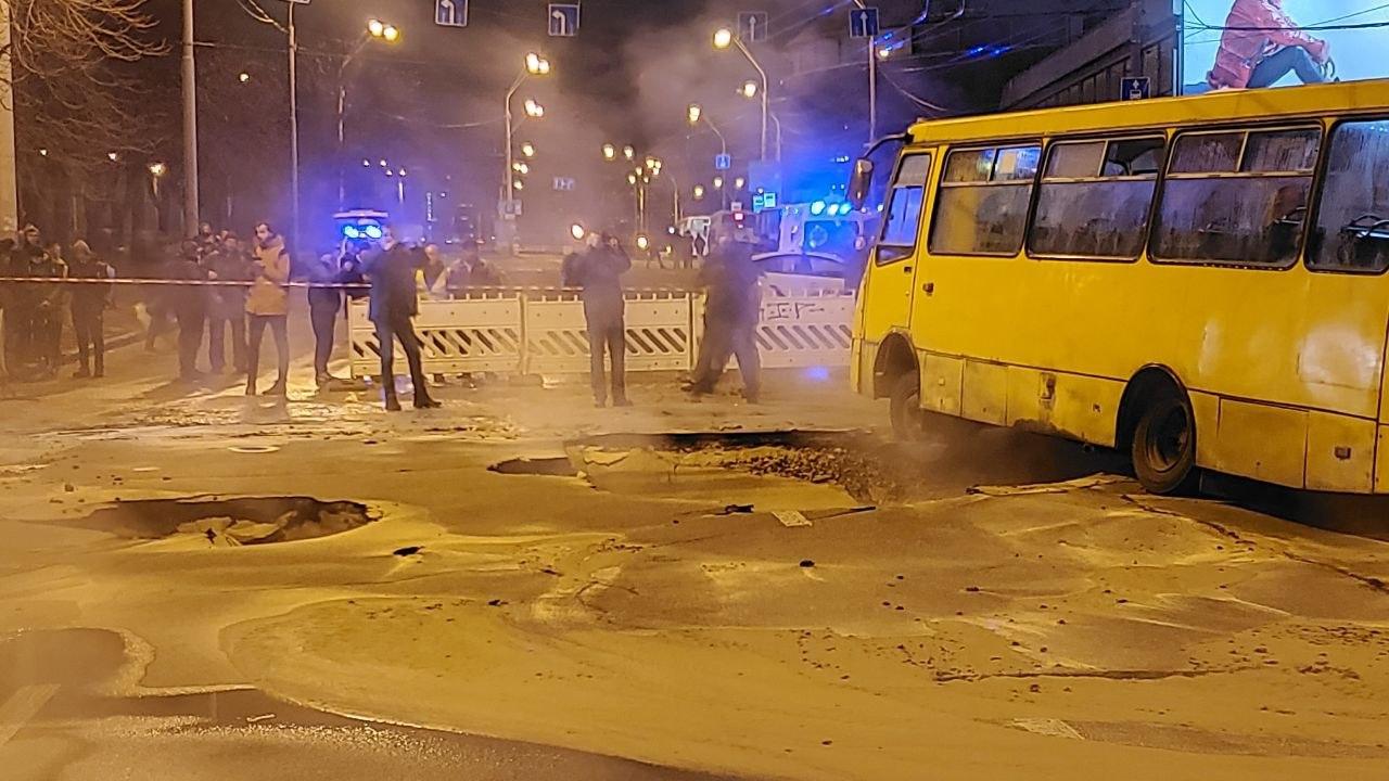 Вокруг Ocean Plaza огромные дыры в асфальте, в которые чуть не провалился автобус. Как передают "Стране" очевидцы, именно здесь прорвали трубы. Людей из маршрутки успели эвакуировать.