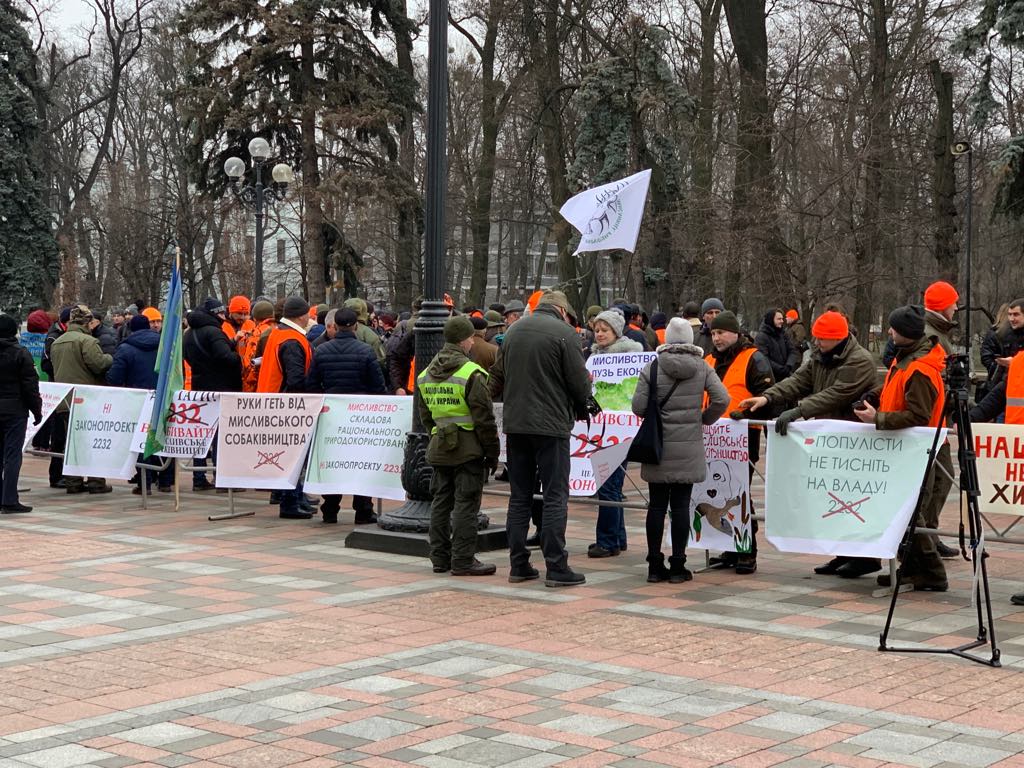 Под Радой протестуют против рынка земли и закона об охотничьем собаководстве. Фото