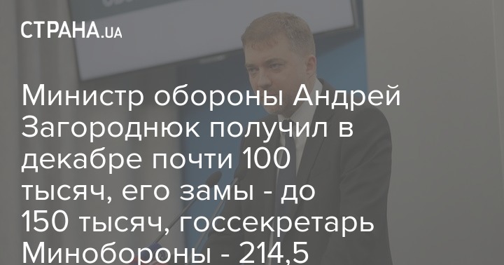 Зарплата министра обороны Андрея Загороднюка за декабрь составила 97,2 тыс. гривен, его заместителей - от 120,6 тыс. до 148 тыс. гривен, государственного секретаря министерства – 214,5 тыс. гривен. Об этом сообщают "Украинские новости" со ссылкой на Министерство обороны.