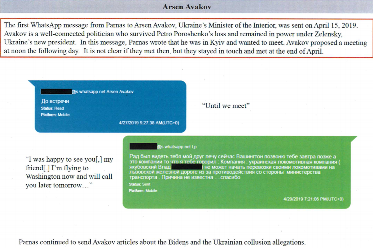 Еще в переписке с Шефиром Лев Парнас говорит, что передавал Зеленскому письмо от Джулиани. Причем делалось это через Арсена Авакова.