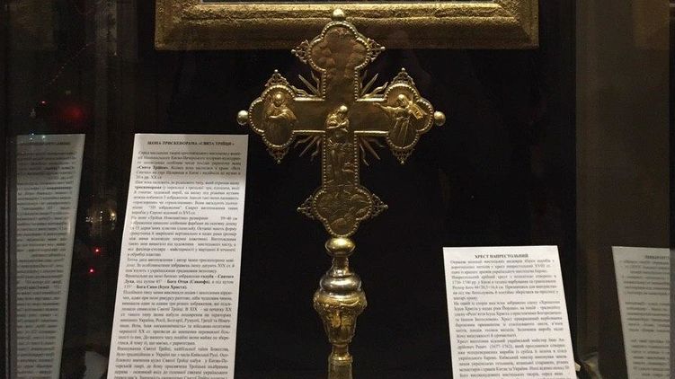В экспозицию вошла икона-трисценорама "Святая Троица" и настольный крест XVIII века.
