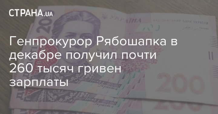 "Размер начисленной заработной платы за декабрь 2019 года составляет: Генеральному прокурору Рябошапке Р.Г – 259 336,63 грн", - говорится в сообщении.