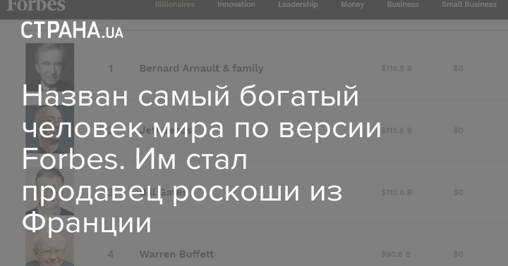 Назван самый богатый человек мира по версии Forbes. Им стал продавец роскоши из Франции