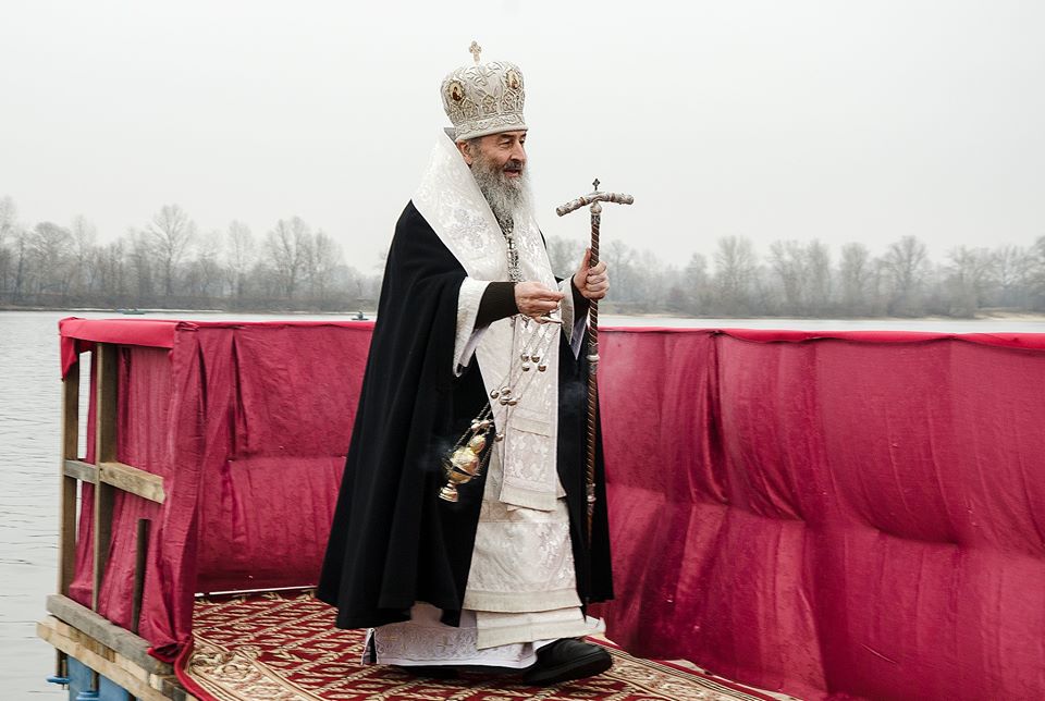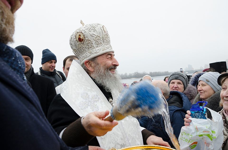 Предстоятель Украинской Православной Церкви Блаженнейший Митрополит Онуфрий освятил воды Днепра возле Свято-Покровского собора в Киеве.