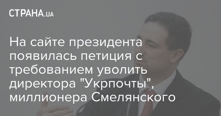 На портале электронных петиций сайта президента появилось обращение к Владимиру Зеленскому с просьбой уволить Игоря Смелянского. Последний занимает пост руководителя "Укрпочты".