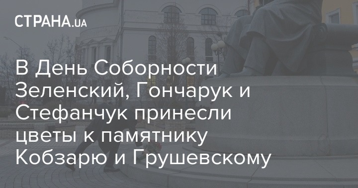 Сегодня утром, 22 января, президент Украины Владимир Зеленский принял участие в церемонии возложения цветов к памятникам Тарасу Шевченко и Михаилу Грушевскому по случаю Дня соборности Украины.