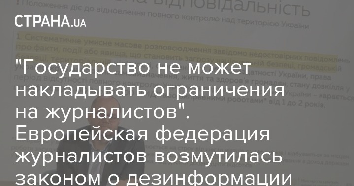 В Европейской федерации журналистов поддержали общее возмущение коллег из Национального союза журналистов Украины в вопросе проекта закона о дезинформации, который допускает государственное вмешательство в журналистскую профессию и ограничивает права работников СМИ.