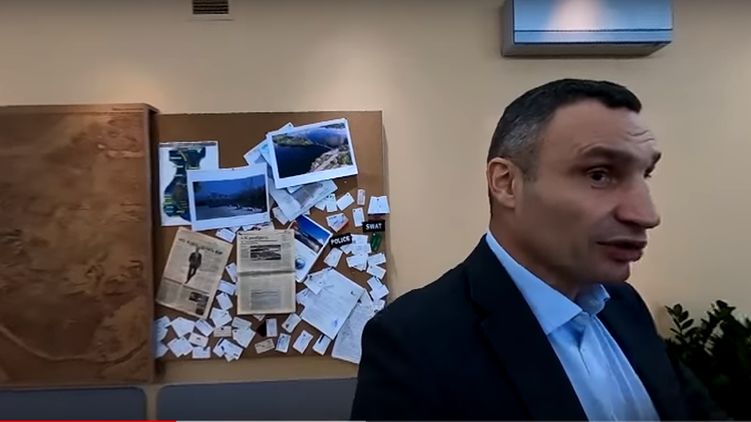 Кличко назвал его "кабинетом принятия решений" и показал "дигитальную карту" Киева из космоса. Карта, как выяснилось, с секретом - она раздвигается, а за ней находится большой экран для презентаций и совещаний.