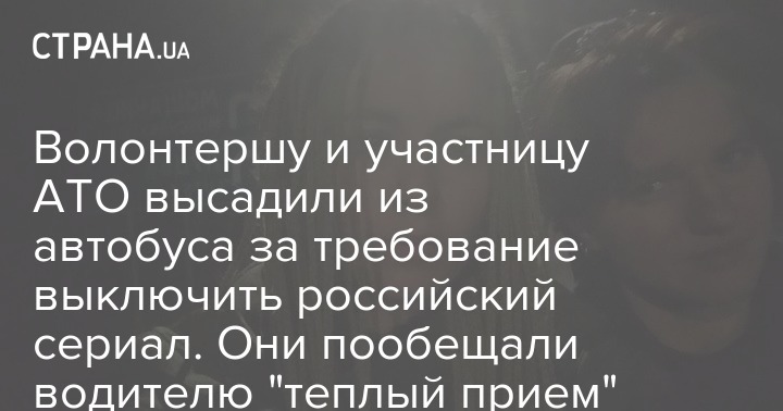 Участвовавшая в АТО парамедик Ярына Черногуз и волонтерша Анастасия устроили скандал в автобусе, ехавшем из Луцка в Киев. Женщин возмутило, что в салоне идет российский сериал. После долгих пререканий с водителем и пассажирами женщин высадили.