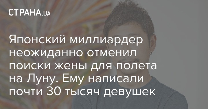 Японский миллиардер Юсаку Маедзава, который в 2023 году станет первым человеком, который отправится в полет вокруг Луны на аппарате SpaceX, перестал искать спутницу, которая должна была стать его женой и сопровождать его в полете. 44-летний миллиардер принял решение прекратить проект под названием "сватовство для серьезных отношений один на один", несмотря на то, что ему написали 27 722 женщин со всего мира.