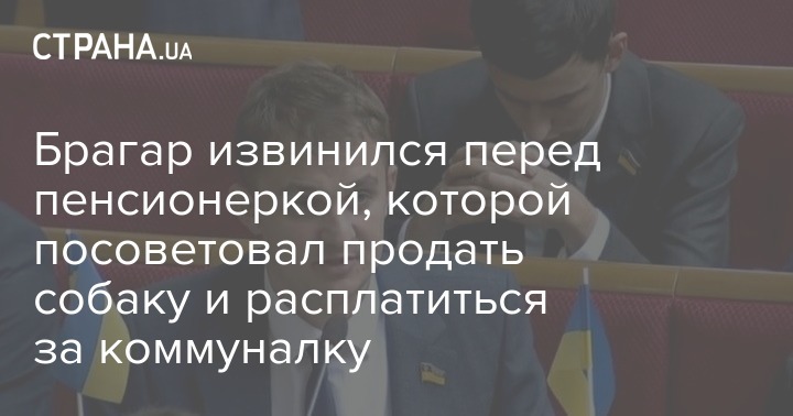 Народный депутат от фракции "Слуга народа" Евгений Брагар позвонил с извинениями пенсионерке, которой посоветовал продать собаку и расплатиться за коммуналку.