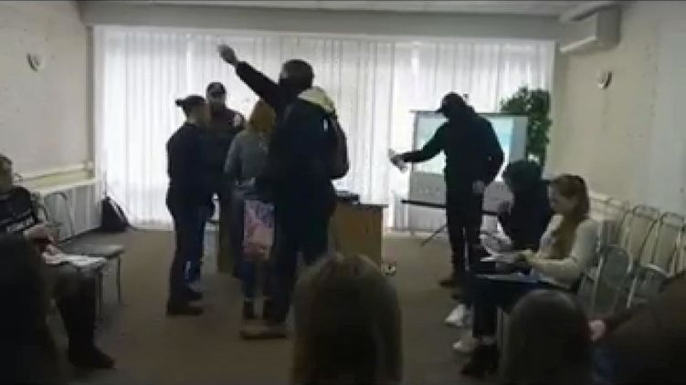 Кадр нападения на ЛГБТ-тренинге. Фото: 24tv.ua