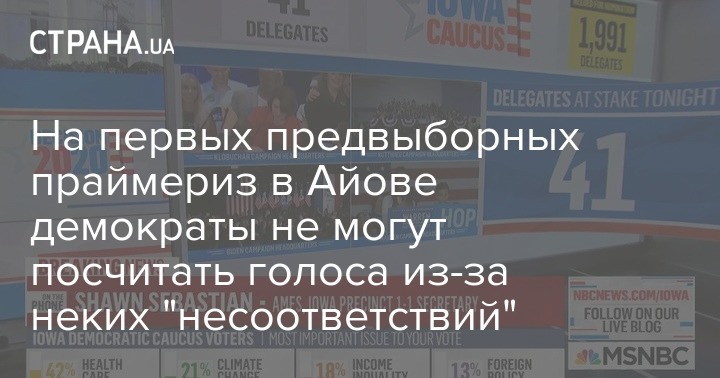 В американском штате Айова, где прошли первые предварительные внутрипартийные выборы, из-за "несоответствий" в подсчете голосов через специальное приложение задерживается обнародование результатов кокусов демократов. Об этом сообщает NBC News.