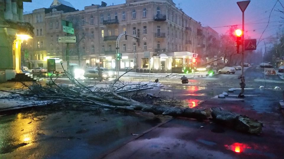 Ситуацию осложнили упавшие деревья. Так, утром было задержано движение трамваев №12, 17 от Лесная трасса - Детский санаторий, поскольку в направлении Пущи-Водицы упало дерево. Об этом сообщили в Киевпастрансе.