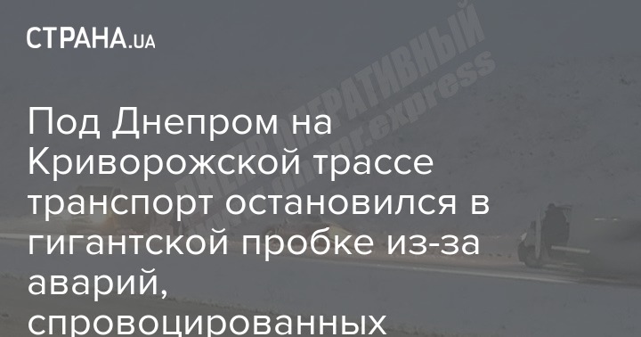 "Под Днепром на Криворожской трассе, в сторону Каменского и по направлению к Днепру - крайне сложная ситуация. Остановлены грузовые авто, на дороге серьезные заторы и аварии", - говорится в сообщении.