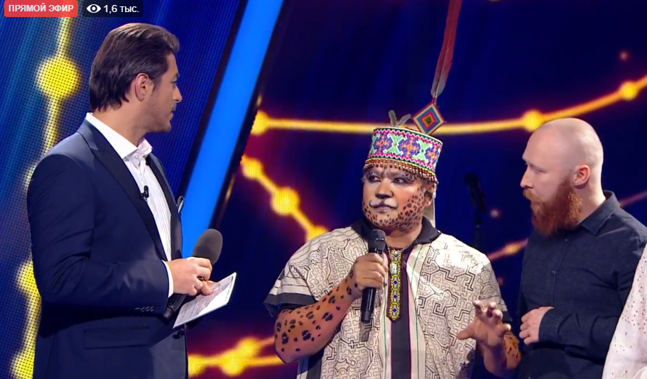 20:03 Катя Чили говорит, что шаман на сцене настоящий. Он из Амазонии. Шаман поясняет, что зажигал на сцене дух табака, чтобы очистить окружающее пространство от негатива