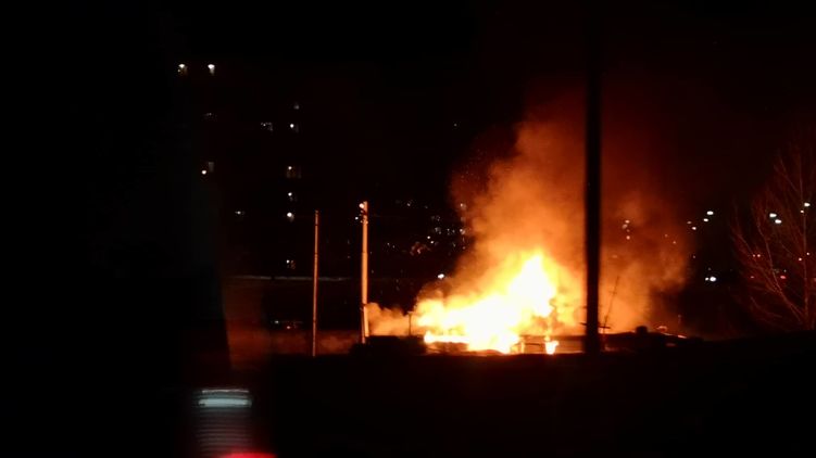 Вечером в пятницу, 7 февраля, в Киеве на Троещине произошел большой пожар. Загорелось подсобное строение: гараж или сарай.