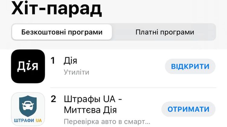 "Дія - первая в рейтинге украинского App Store в категориях Utilites и Топ-бесплатных + первая в рейтинге топ-бесплатных в Play Market. Вчера приложение продержалось на 6 позиции в украинском поиске App Store, в американском - на первой", - добавил Федоров.