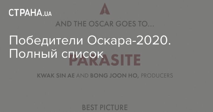 Вот полный список победителей во всех номинациях Оскара-2020: