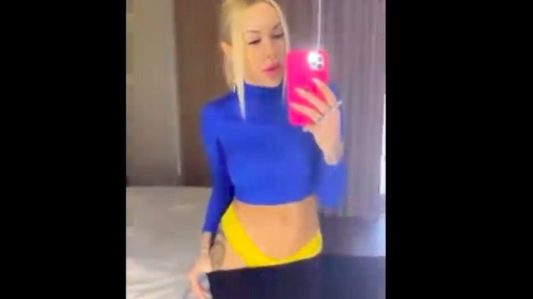 На странице в Instagram Ирины Морозюк ролика уже нет, но он моментально разлетелся по социальным сетям: его публикуют с разных аккаунтов в Facebook и YоuTube. На видео жена футболиста держит телефон и снимает, как она поет перед зеркалом государственный гимн. При этом она спустила штаны, и на ней остались желтые трусы и синяя водолазка.