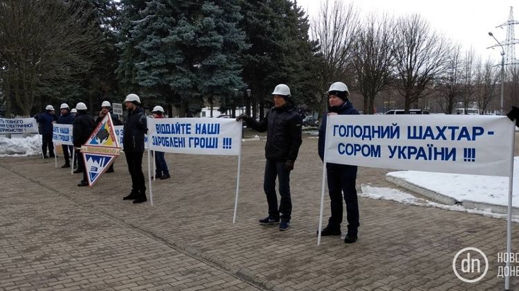 Во вторник, 11 февраля, в Краматорске Донецкой области два десятка горняков государственной шахты Южнодонбасская №1 провели акцию под зданием Донецкой областной госадминистрации. Они требуют выплаты долгов по зарплате.