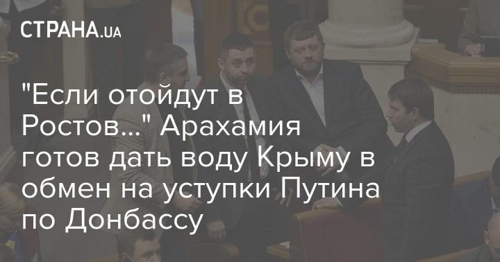 "Я буду считать это достаточным компромиссом. Я бы на такое пошел. Потому что в Крыму так или иначе водой будут пользоваться граждане Украины… Если это будет этакий обмен на то, что они отходят со всеми своими вооруженными формированиями в Ростов, а мы устанавливаем полный контроль над нашей границей, и за это надо подать воду в Крым, я бы на такое точно пошел", - сказал Арахамия.