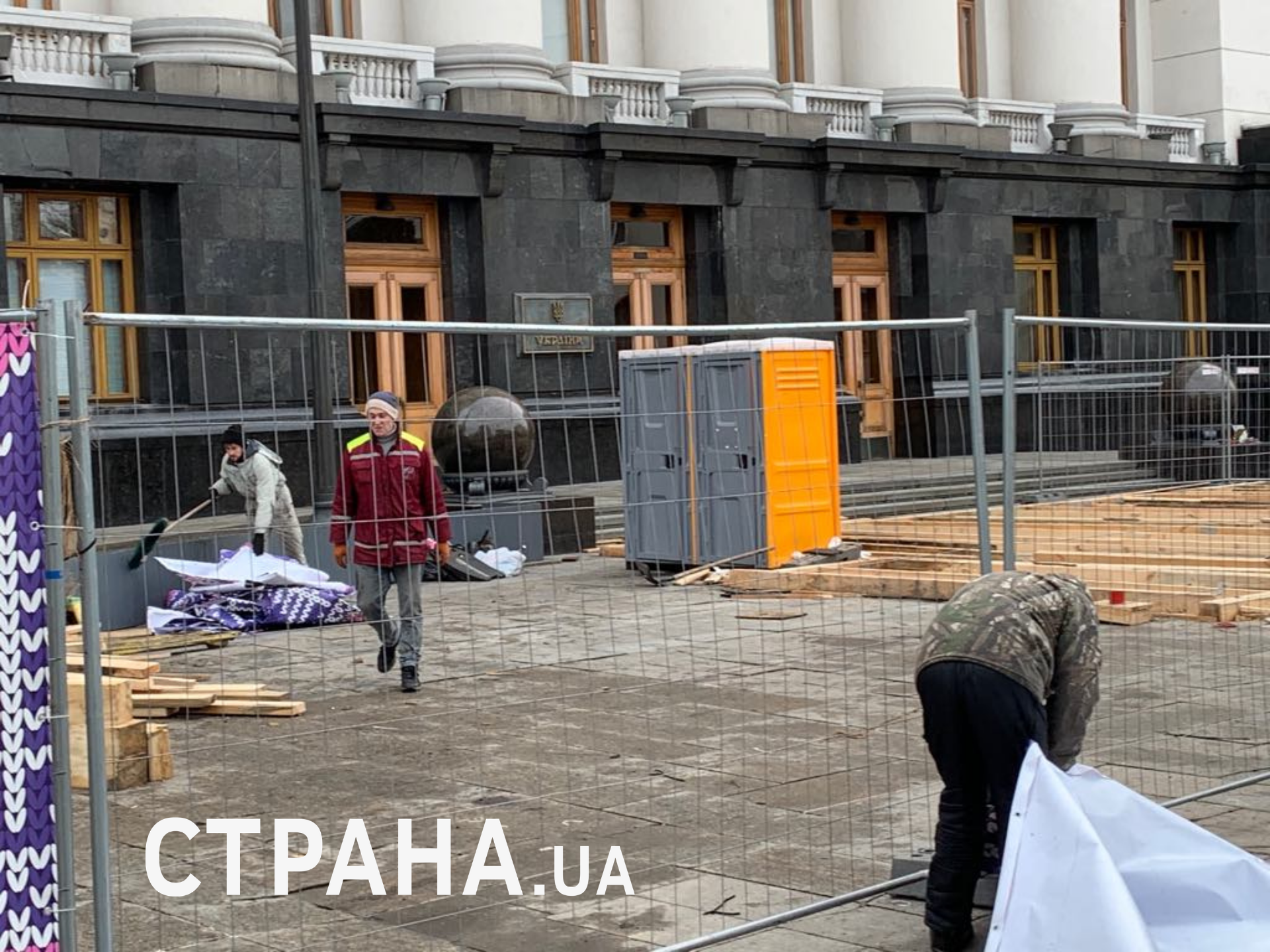 Каток перед ОП начали строить спустя пару дней после акции националистов во время саммита "Нормандской четверки" в Париже, на том месте, где они митинговали.